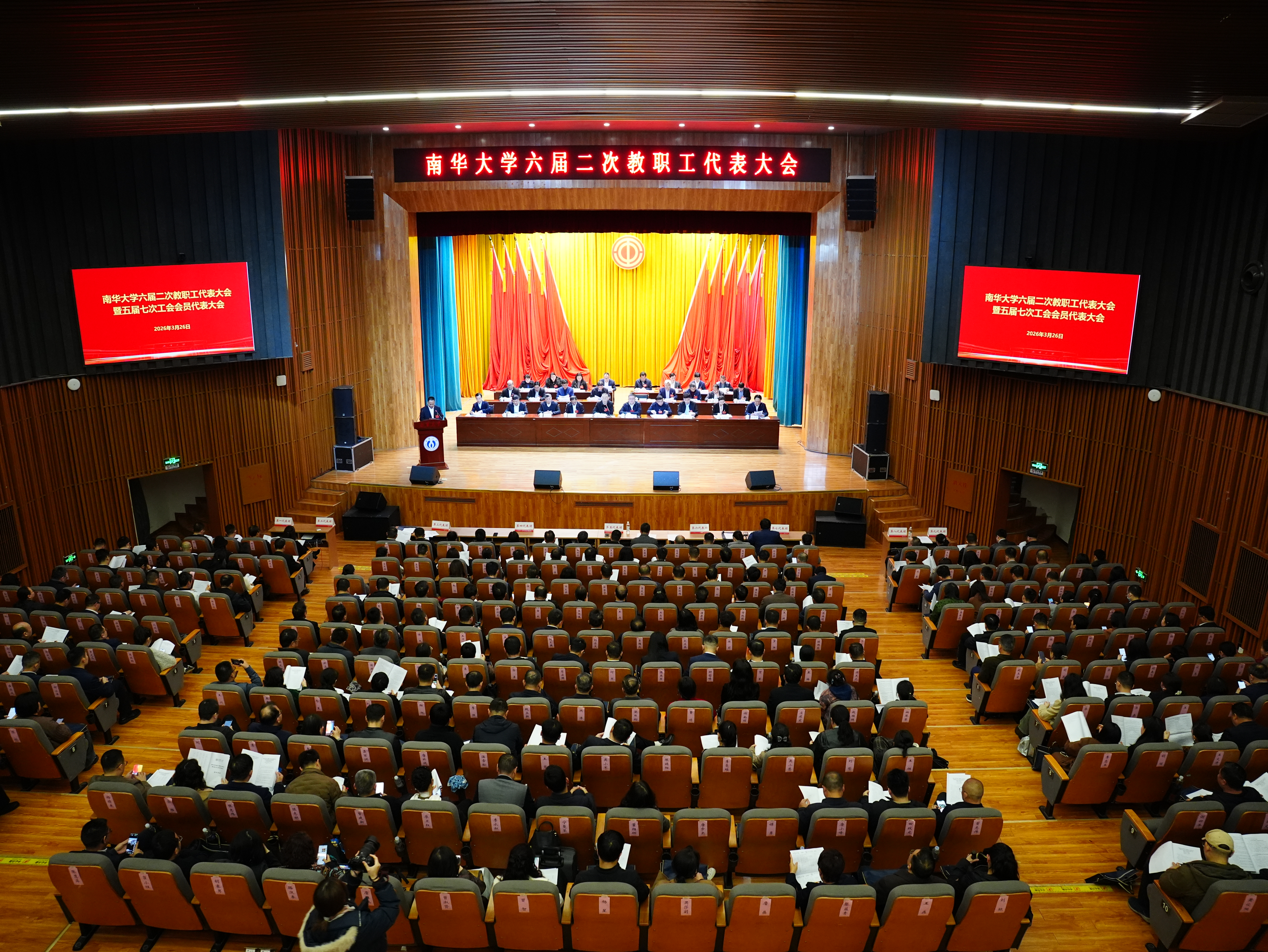 3月27日,南华大学第六届教职工代表大会第二次会议在南华礼堂召开。全体校领导、334名正式代表、139名列席代表和17名特邀代表参加会议。